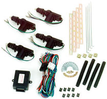 Incluye: Dos motores de 5 cables (maestros) para trabar/destrabar, más 2 motores de puertas (esclavos) de 2 cables. Completo con un módulo de control (con 2 relés), fusible 15A, y todos los elementos de montaje necesarios.